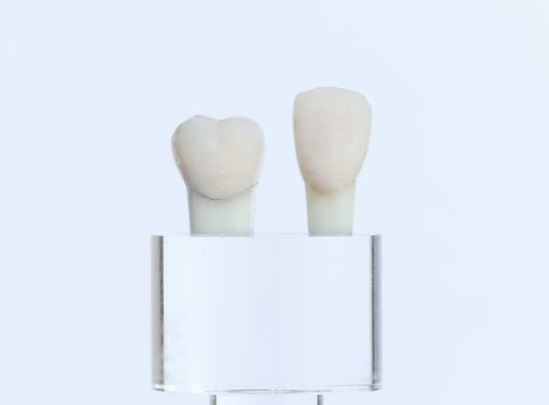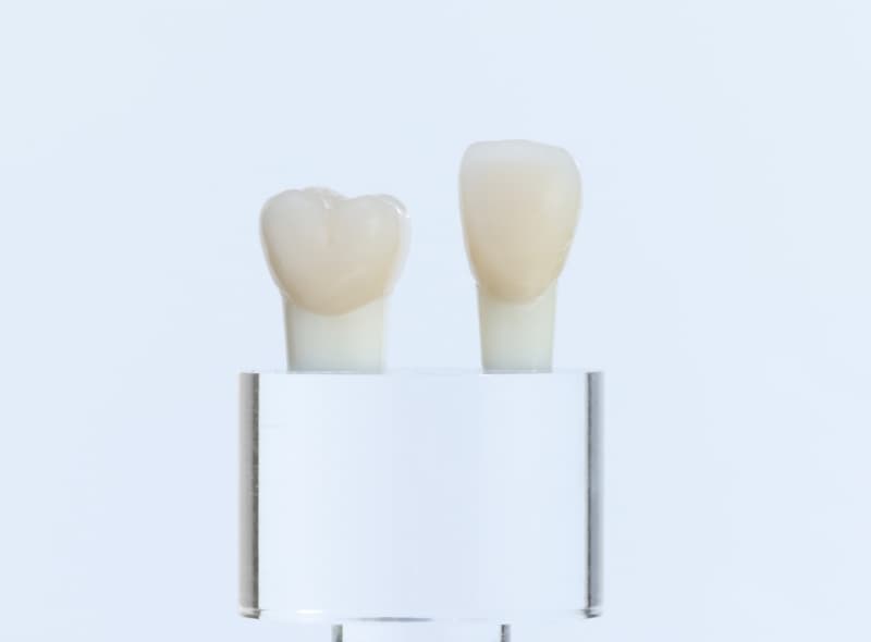 ジルコニアフレームオールセラミッククラウンは、高強度のジルコニアをフレームに使用し、その上にセラミックを盛り付けた補綴物です。天然歯に近い色調と透明感を再現し、特に前歯部などの審美性が求められる部位で威力を発揮します。強度と審美性を兼ね備えた被せ物をご希望の方におすすめです。