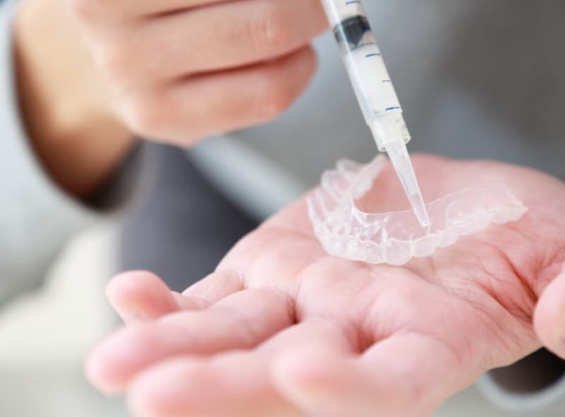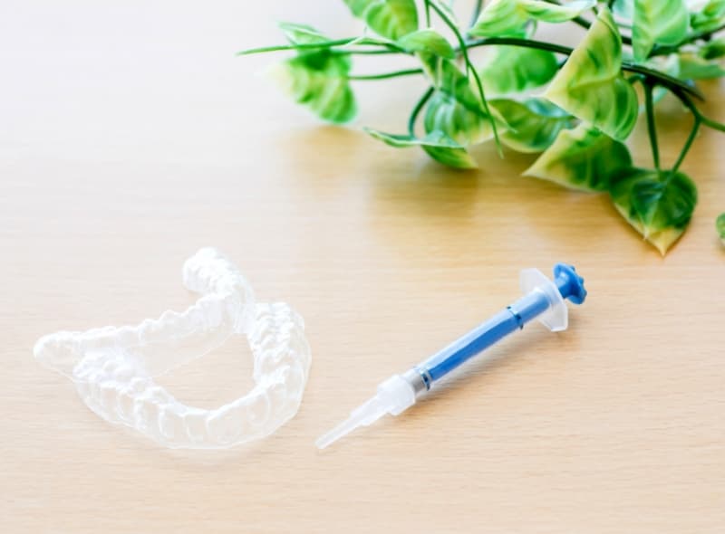 マウスピースが完成したら、ホワイトニングキットをお渡しし、ご自宅でホワイトニングを行っていただきます。ホワイトニング方法としては、マウスピースに専用の薬剤を入れて歯に2時間程度はめていただきます。