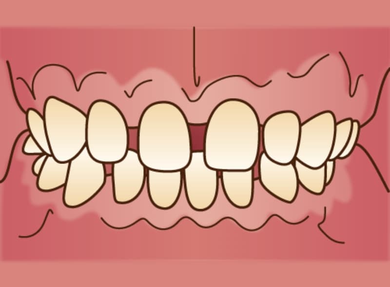歯がバラバラに生えている状態です。叢生は特にブラッシングが難しいため、虫歯や歯周病の罹患リスクが高い傾向にあります。